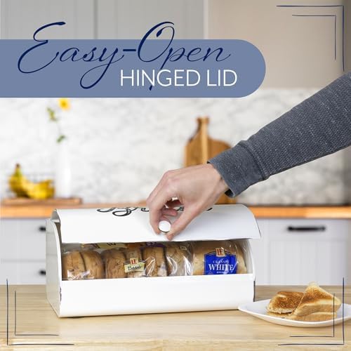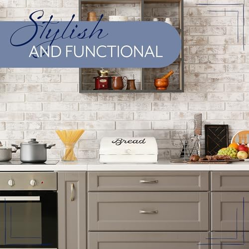 – **Stylish Design:** The classic rustic white finish with black accents gives this bread box a charming farmhouse look that adds warmth and character to your kitchen.